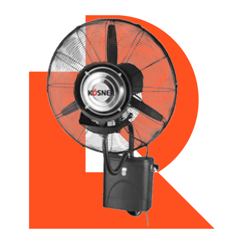 El Ventilador Nebulizador Industrial de pared Kosner de 26 pulgadas está diseñado para mover grandes volúmenes de aire, de esta forma baja la temperatura de amplias superficies. Lugares de uso: Salas de ventas, oficinas, restaurantes, galpones, salas de eventos, carpas, bodegas.